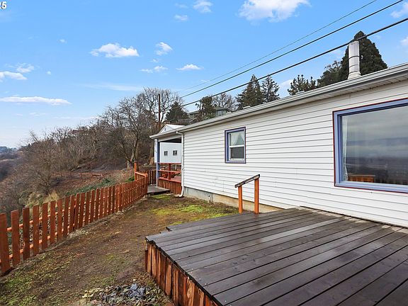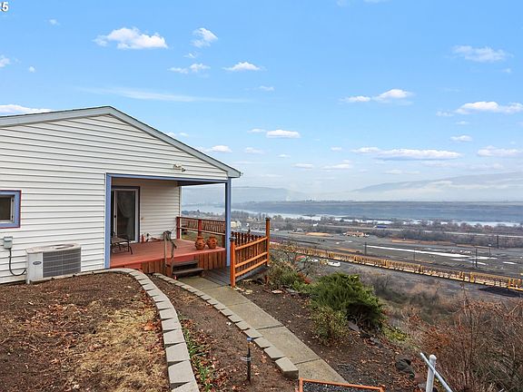 Perched on the hillside with amazing 180-degree views of The Dalles, the Columbia River, and The Dalles Dam. This 2-bedroom, 1-bathroom home offers the perfect mix of charm and functionality. Spanning 1,344 sq. ft., the home features large bay windows that flood the space with natural light, concrete floors, and an inviting layout. A bonus room, converted from the garage, adds extra versatility perfect for an office, studio, or storage area. Step outside onto two expansive decks, where you can take in the sweeping views with your morning coffee or unwind at sunset. The large laundry room adds extra convenience, while the peaceful setting behind the shop provides an opportunity for a private yard or outdoor sanctuary. For those in need of workspace or storage, this property delivers with a massive 48x30 three-bay shop complete with a heater, loft, office, workbench, and plumbed air lines. A lean-to off the back provides additional covered storage, making this space ideal for hobbyists, mechanics, or anyone needing extra room for their projects. Off in a quiet location, this home is a rare find offering both stunning scenery and ample workspace.