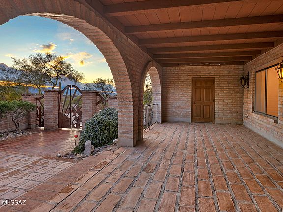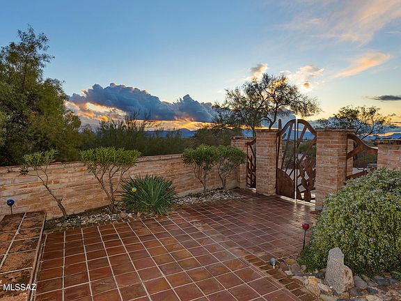 Located in the highly sought-after Catalina Foothills Estates #9, this quintessential burnt-adobe territorial style residence on an elevated 1-acre lot delivers unobstructed, up-close mountain views to the north & twinkling city lights to south. Enjoy convenience without giving up the natural beauty of the desert & privacy.Very low price per square foot. Exposed aggregate circular driveway & motorcourt with plenty of space for parking. A handmade iron gate & burnt adobe walls enclose a charming courtyard with Mexican tile accents & a covered entry. Spacious living room & formal dining room off of the entry. Kitchen w/ center island & breakfast nook w/ sliding glass door that leads to covered patio & outdoor kitchen area perfect for merging the indoor & outdoor living spaces while enjoying the marvelous views.