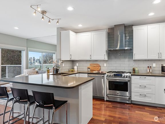 Escape to your urban retreat in this beautiful townhouse condo w/stunning Elliott Bay, Cascade Mtn & Seattle skyline views. Light-filled & fully updated, you will be captivated w/its new kitchen featuring shaker cabinets, quartz counters & updated appliances. Gorgeous primary suite w/spa bath+walk-in closet opens to generous view deck. 2 add’l bdrms w/quality built-ins provide stylish functionality. Take a leisurely walk to feast at Salty’s or Marination Ma Kai, bike the trail to Alki Beach or take a scenic water taxi trip to catch your team at a home game or the waterfront. Attached 2 car garage enters to main level. Located on a quiet hillside, it feels secluded but just minutes away from all Seattle has to offer! Preinspected.