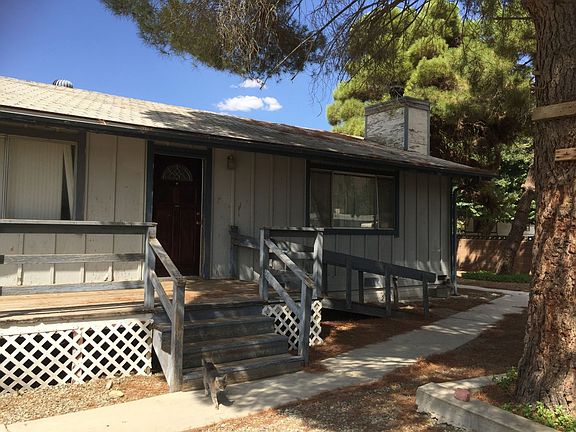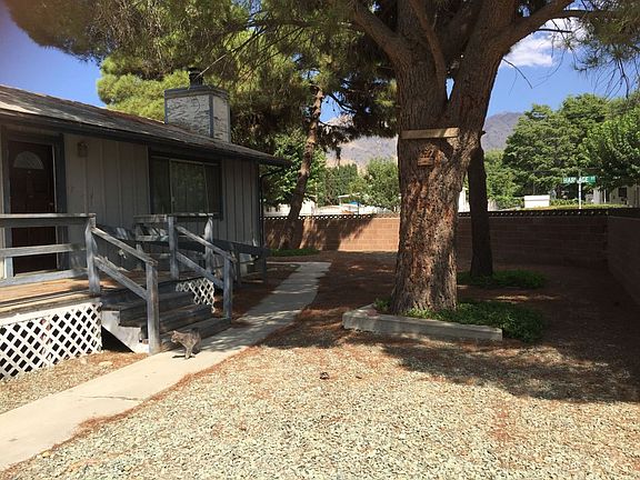 Looks like a house!!! This singlewide has an addition with wood siding encompassing the entire structure giving it the appearance of a stick built home. The interior walls of mobile are all wood, a large frontroom with f/p, huge pantry, evap cooler is ground level, . Garage is oversized at 673 sq ft and has a workshop attached to the back. Concrete walkways, large deck, tall trees and a concrete block wall for privacy. Easy care yard.