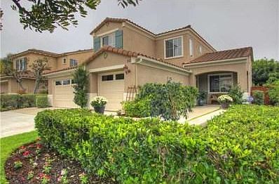 This home has everything you want for your family. With a welcoming curb appeal, you don't want to miss this charming Evans Point former model home. A quiet cul-de-sac location with a large backyard. ENTRY level bedroom and FULL bath. Master Suite with walk-in closet, dual sinks, oval soaking tub and separate shower. Stunning landscape in backyard. Perfect for bar-b-ques or just relaxing! Award winning Carlsbad schools, A/C, beautiful stone flooring, 3 car garage, NO MELLO ROOS.
