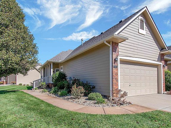 This is a great opportunity to own a west Wichita, KS affordable patio home, with a guest basement in an established area. No Specials! Two car side load garage, and towards the end of a cul-de-sac. This home has a second master suite in the basement, (15’10” x 15’6”) with a Jack & Jill bathroom to service the downstairs conforming bedroom and family room area. The downstairs family room features a wet bar and daylight window. There is a very good sized unfinished storage room in the basement. The upstairs master bedroom is very large for a patio home (16’4” x 13’6”), with a large picture window. The master suite includes a separate tub & shower, dual sinks, walk in closet and HEATED floors. The laundry room is on the main floor close to the main floor master suite. The kitchen has granite counters and nice wood cabinets. The main floor features a dinning area between the upstairs living room and kitchen. It’s a unique plan built to accommodate the lot, so this is no cookie cutter design. The HOA includes lawn service, trash and snow removal pond with fishing. Ride your bikes to Sedgwick County Park! Close access to 235 and the 21st & Maize shopping corridor. Maize schools. Come see this house and make it your home!