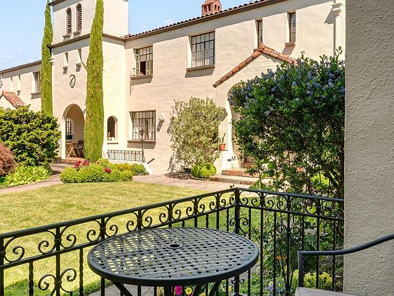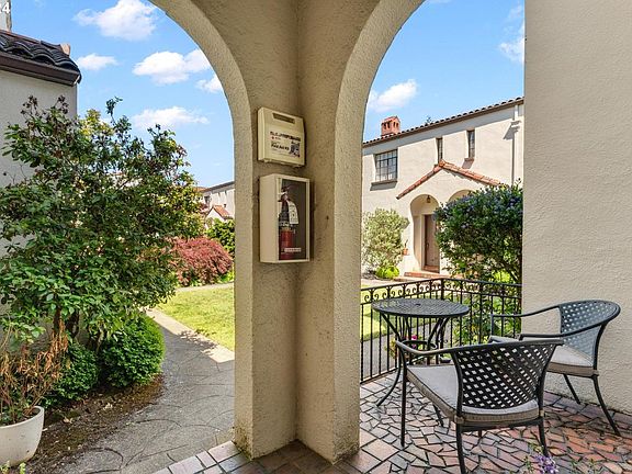 Here's your chance to live in a charming garden courtyard condo on the National Historic Register. Designed by Carl Linde to emulate "a quiet street in a Mediterranean town". This is one of the best units in the complex (IMHO) because of its East/West facing windows for great light throughout the day! Cute as a button and move-in ready with several key updates! Primarily hardwoods, original iron banister, newer period bath remodel (2017), new heat pump system (2019), Indow iinterior storm windows (2017), newer appliances (LG fridge 2017, Bosch dishwasher 2022, & GE micro 2024), and professionally installed dimmable overhead lighting (2022). Detached garage is located steps from the gated front entrance. Just blocks from great restaurants, food, and access to downtown & freeways.