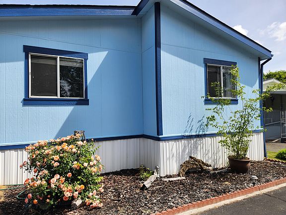 This beautifully updated 1337sqft. manufactured home is open and airy, with vaulted ceilings throughout, there are large custom accessible doorways as well. Enjoy a formal dining area and cozy breakfast nook, also a convenient laundry space right off the custom kitchen...Large primary bedroom and bath... This corner lot is totally fenced with sprinkler and drip system, perfect for gardening. There are 2 storage/work shop units, one 12'x16' with cement floor and power, also a 4'x8' shed. Accessible ramp to front door, a large attached covered carport. Rent is $670 and 2 pets are allowed, close to everything Grants Pass has to offer and READY TO MOVE INTO...