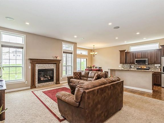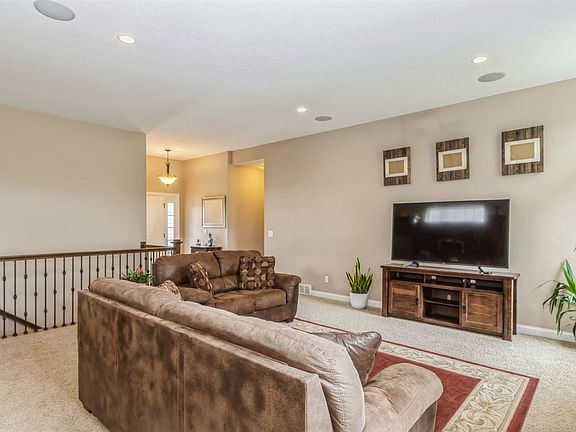 Welcome to this charming ranch-style home nestled in this highly sought-after neighborhood! This well-built home offers four large bedrooms, three full baths, and an oversized three-stall garage. You will love the open floor plan and spacious great room with a cozy gas fireplace. The kitchen is delightful, boasting hardwood floors, elegant granite countertops, stainless steel appliances, a large breakfast bar, a walk-in pantry, and a dining area overlooking the patio. For added convenience, the main level features a laundry room, making chores a breeze. Retreat to the spacious master suite, complete with a walk-in closet, a jetted tub, tiled floors, a dual vanity, and ample storage. Two additional bedrooms and a full bath round out the main level. The lower level offers a versatile rec room currently set up with a projector system that stays with the home and office space. There is also an additional bedroom and a full bathroom making it the perfect for hosting guests or creating your ideal gathering space. Be sure to check out the large unfinished area offering ample storage or could be built out to fit your needs. Outside, enjoy the lovely flat yard and patio, ideal for outdoor gatherings and relaxing around the fire pit. This home comes equipped with tons of updates like a new roof, siding, gutters, downspouts, soffits, and new insulated garage doors. Nice upgrades to the home include built-in surround sound, plumbed for a central vacuum system, and a water softener. Conveniently located near the neighborhood pool, and with quick access to walking trails, major employers, schools, restaurants, and shopping options, this home offers both comfort and convenience. Don't miss the opportunity to make it yours!