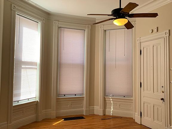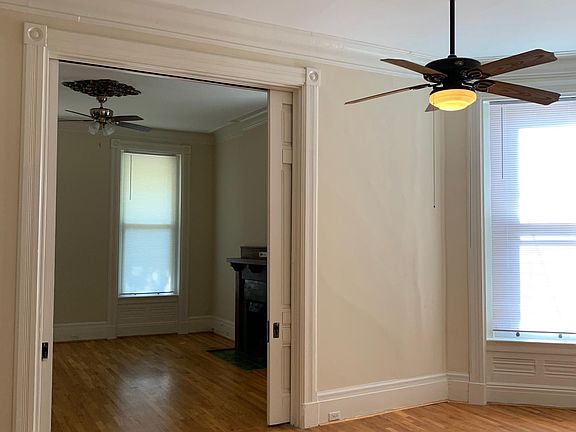 Central air and heatCrown moldingFree laundry in apartmentHigh ceilingsTrack lightingLarge pocket doorsOrnamental fireplace
