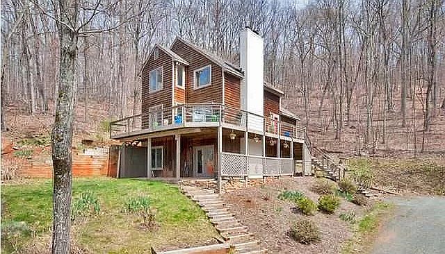 Secluded, yet convenient, mountainside home with inspirational westerly views and spectacular sunset light shows. (photo is from the back deck) The home is off 20 North only three miles from the conveniences of Pantops: Martha Jefferson Hospital, two grocery stores, car repair and wash, self storage, restaurants, med express and numerous other businesses. Main transit routes 250 and 64 serve to provide easy travel through and around town. 3 bedroom/3 full baths. Great room with skylights, large windows and vaulted ceiling make for a bright open feel. A stone, wood burning, fireplace warms things up when the temperatures fall. Previous tenants and visitors have commented they felt like they were outside Seattle when they spent time at the house. Seeking 12 month lease. Strictly NON SMOKING rental. Pets considered on case by case basis. 1st months rent and security, pet deposits due at signing. Utilities are handled by tenant. Steep drive: best to have minimum of FWD but better with 4x4. No subletting or Short stay renting. Tenants can maintain the yard or arrange with agent to have it done with monthly fee. FYI: Well worth it, but, as seen in pictures, there are a few stairs to get the the views.