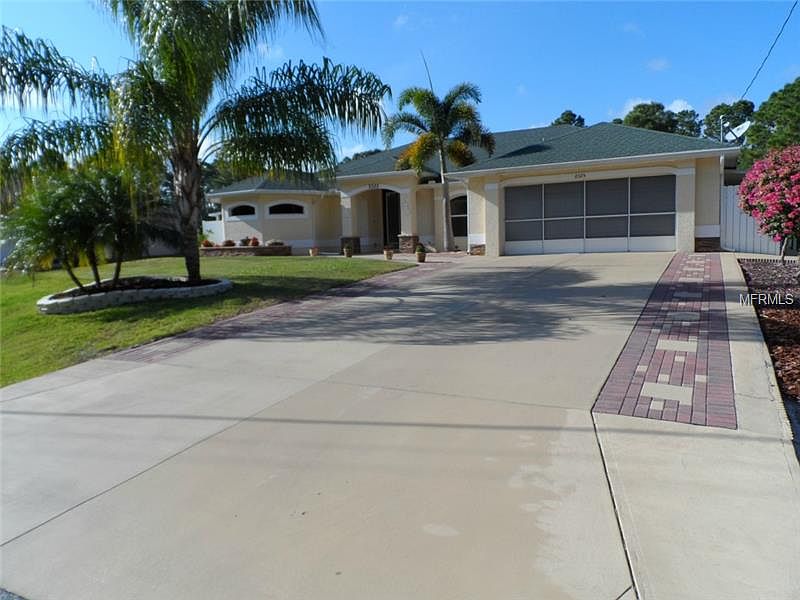 Stunning, 3 Bedroom, 2 bath home located on an oversided lot in a peaceful North Port neighborhood. Huge Lanai with sun-shades in place and an inviting pool to enjoy in our little piece of paradise. This immaculate home is move in ready. With Tray ceilings, plant shelves and nooks to display your collectibles, this home shows like a mode!. The split floor plan offers both privacy and space. The kitchen has beautiful granite counter tops, 42" white cabinets with crown molding, large pantry, a decorative back-splash, and porcelain floor tile. The kitchen sink also has a reverse osmosis filtration system in place. The master Bedroom is large enough to accommodate a comfortable sitting area that overlooks the lanai and sparkling pool. The Master Bath has a separate water closet, roman shower, soaking tub, decorative taller cabinets, double bowl vanity, a linen closet and 2 walk-in closets. The 2nd and 3rd bedrooms also have walk-in closets. The garage floor has anti slip finish, 2 pull down stair cases for storage, roof exhaust, insulated roof and garage door and a wide drive way. There are pavers around the exterior of the home and a nice patio outside of the cage. Lots of room to play and relax on your pool deck or in your solar heated pool.