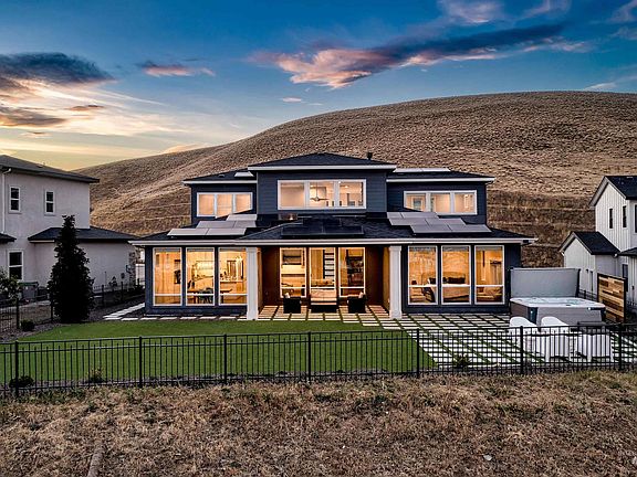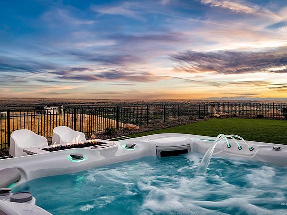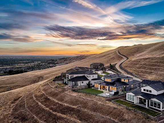 Perched above on a quiet cul-de-sac in the Boise Foothills with breathtaking views of the mountains and valley! Entertain both indoors/outdoors all year round. Impressive backyard includes new artificial turf, stone pavers, gas fire pit, covered patio, fully fenced and incredible views! East Boise lifestyle- just steps away from hiking/biking trails, Bown Crossing, Boise River, Lucky Peak and excellent schools. Soaring ceilings greet guests with picturesque windows that bring in abundance of natural light. Natural hardwood floors, custom built-ins, floor to ceiling stone fireplace and designer finishes throughout. Flexible floor plan- 4 bedrooms + bonus room + main level office. Gourmet kitchen features expansive island, double ovens and walk-in pantry. Main level master suite includes private patio access, dual vanity with built-in make up vanity, freestanding tub and tiled walk-in shower. Main level junior suite provides great flexibility. Solar panel renewable energy home. Relax by the community pool!