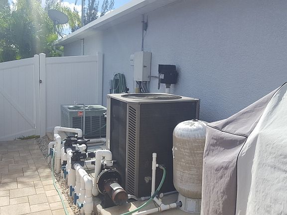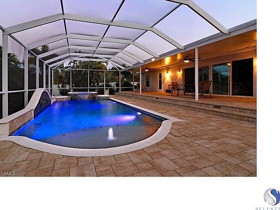 Motivated Seller! Check out this 3 bedroom + den home with a heated custom pool/spa package on a corner lot with mature landscaping. The patio is huge and is the whole length of the back of the home. The pool/spa are controlled with the Aqua-link system and has 7 different light colors to choose from while you are relaxing on your over-sized screened lanai which was completed in 2010. Seller just replaced the white appliances with black ones. There are 4 fountains, a bubbler and a sun lounge area in the pool. It is a great area for entertaining your guests. The inside & outside of the home have been painted & the seller had new tile installed in the kitchen, living area, laundry room, both bathrooms, foyer and formal dining room. He added impact glass on the rear sliders & 2 of the back doors that lead to the pool area. There is new carpet in 2 of the 3 bedrooms & the home is wired for a generator. This is a great location with easy access to Ft Myers & Punta Gorda.