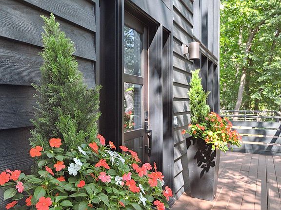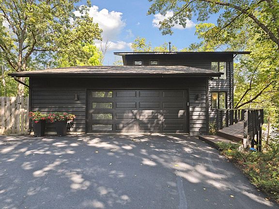 Surrounded by nature, this stunning contemporary home designed by Bruce Bren will impress! Fantastic tree top views of the private wooded lot and large wildlife pond from the wrap around deck. Dramatic two-story great room with walls of glass! White millwork with dark hardwood floors. Two fireplaces, one wood burning and one gas. Spacious eat-in kitchen with tons of storage and workspace that opens to the private, fenced backyard. Additional space to entertain in the lower-level walkout amusement room. Idyllically located close to the new Linner Park, Meadow Park, trails and more.