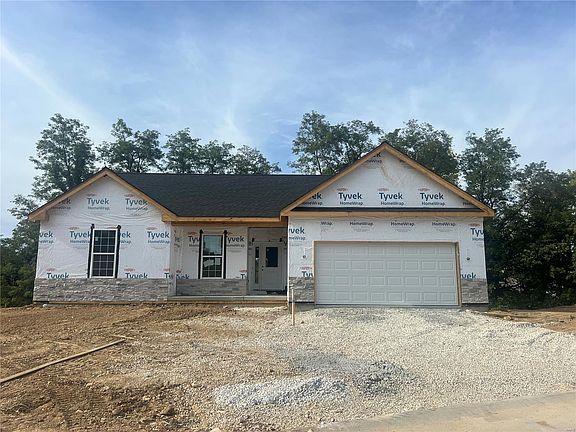 Level homesite that backs to trees in Washington, Missouri is what you will find at Stone Bridge, located off Bieker Road. This new home comes complete with quartz countertops, nine foot ceilings, a covered back deck a finished walk out lower level.