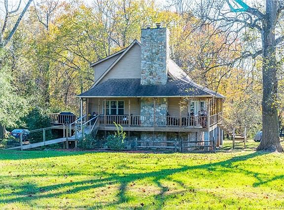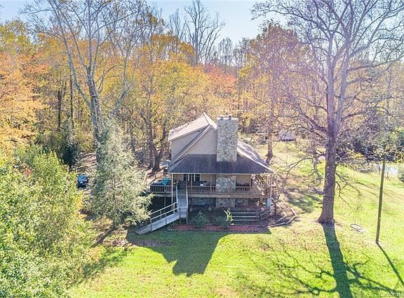 Welcome home! From the moment you step onto the wrap around porch, you'll love the country and rustic feeling of this home. When you walk through the front door, you'll appreciate the openness of this floorplan. Gleaming hardwoods, wood-burning fireplace with floor to ceiling stone, 20-foot ceilings, and beautiful mountain views will WOW you. The eat-in kitchen features freshly painted cabinets and an island, making it perfect for entertaining. The first floor master boasts beautiful mountain views and a quaint master bathroom with a tin walk-in shower. Upstairs you'll find 2 secondary bedrooms and another full bath. In the basement you'll be delighted to discover a second great room that features another stone fireplace and another full bathroom. The garage is accessed through the basement. The property features a huge pasture, a 5 stall barn, a pool with a great poolhouse and cleared land to do whatever you prefer! Bring your animals, toys and hobbies. This land is perfect for all!