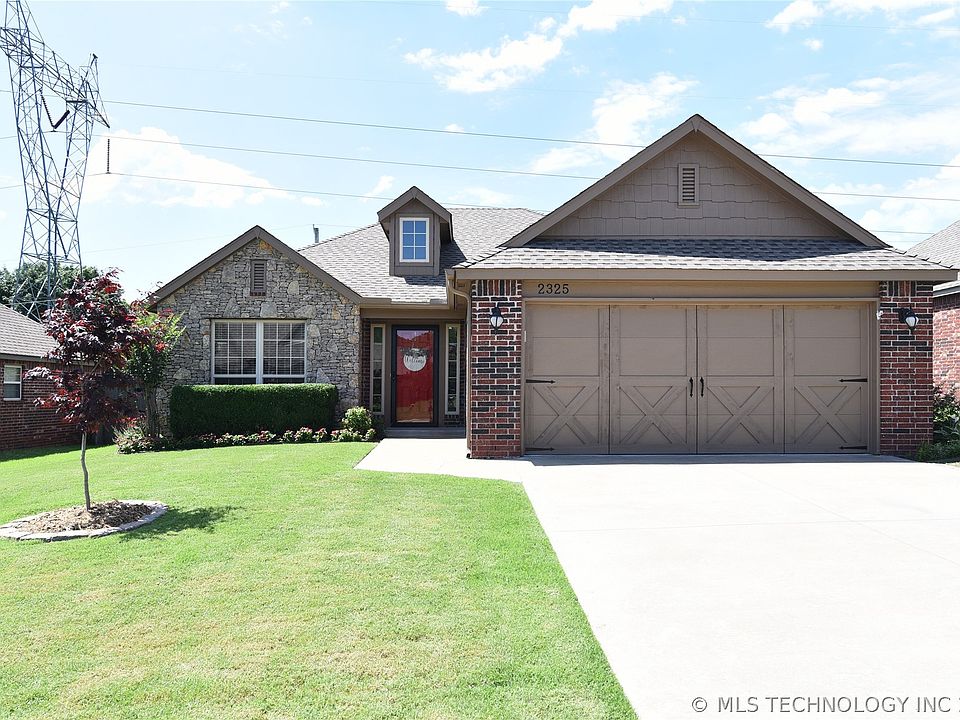 Well appointed, full brick home in South Broken Arrow's Bentley Village subdiv. 3 bedrooms, 2 full baths plus office. Granite island kitchen opens to living room. Expansive backyard overlooks greenbelt from large deck & covered porch. Garage features epoxy flooring & insulated O/H door. So many updates! Including New roof in 2022, hot water tank 2024, new engineered wood floors 2022 & fresh interior & exterior paint. This home shows like new and is ready for you! Come take a look!