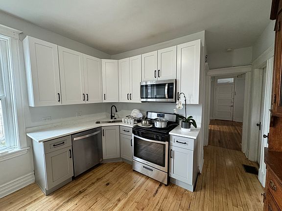 Fantastic opportunity for a couple or a work from home professional. This is an updated smaller two bedroom or one bedroom with a den with a brand new kitchen cabinets, new SS appliances, hardwood floors, large windows and plenty of natural light. New HVAC system, newer washer and dryer. Spacious sunny Back porch off the kitchen. Assigned Outdoor parking is available for rent. Owner pays: water, sewer, trash. Tenant pays: gas (cooking and heat) electricity, internet/cable