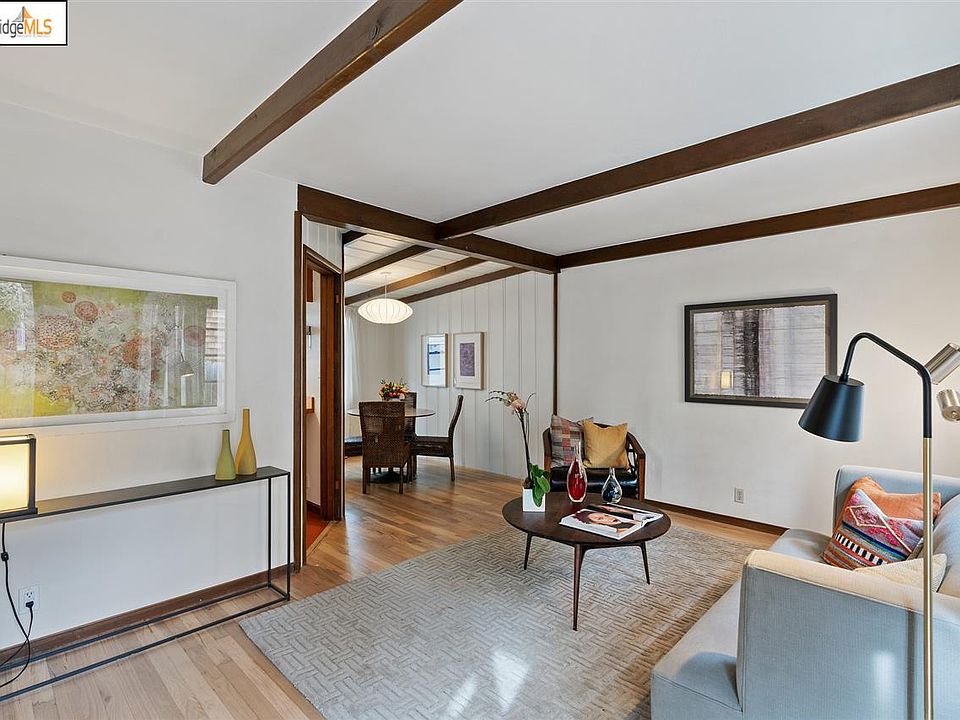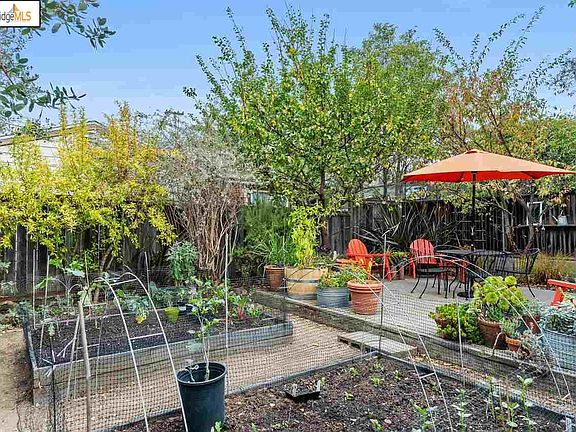 Enter through your own private front door to this lovely one-bedroom condo charmer in lower Elmwood. With its spacious upstairs bedroom & bath, the main floor living and dining room, 1940's kitchen and full laundry room this end unit, with just one shared wall, is one of 4 similar side-by-side townhouse style condo units in the small friendly complex. In addition to a couple of large closets, each condo has half of a garage for storage. This unit also comes with a deeded parking spot. The common area includes a fenced area with patio, lovely perimeter plantings (Blenheim apricots and pluots!) as well as a couple of shared veggie beds. Just across the street is Halcyon Commons, a community-designed mini-park featuring a large grassy area surrounded by flowering shrubs, trees, a picnic area, and a tire swing. BART and UC are each about a mile away!