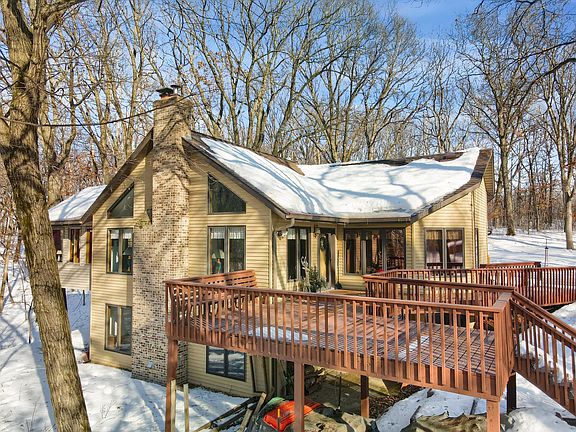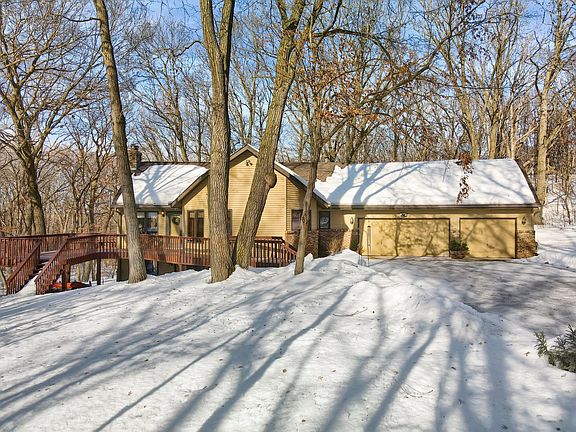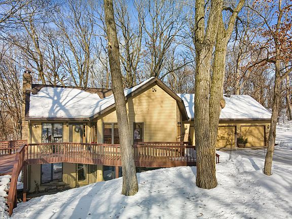 Unique home secluded on 5+ acres of rolling hills and woods. This one-owner home has been meticulously cared. It features main floor Primary Suite with sitting room, open concept floorplan with generous center island kitchen, a vaulted family room with a full brick fireplace and vaulted ceilings. Additionally, a 4 season porch and huge deck are accessible from the main level. The Walk-out lower level features a large amusement area, 2 bedrooms, bath and storage area. The home features a full 360-degree views of the gorgeous lot via Pella Windows (Marvin in the 4 season porch). The porch will surely be a favorite hangout space. Newer mechanicals in home, an oversized 3 car garage (almost 900 SF). Lakeville schools make this home one not to miss