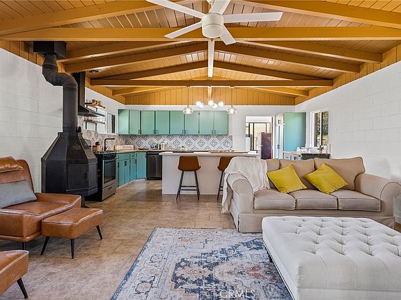 Beautiful remodeled home with Vaulted ceilings on kitchen & living room. Enjoy the city lights from your masters bedroom. Masters bedroom with Walk-in-closet, stay warm and Cozy with your wood burning fireplace Enjoy a walk at the walk-in-closet or perhaps prepared marshmallows at the wood fireplace. Kitchen was restored to a classic mid century style. Bathroom completely remodeled with a spa ambiance. Stay cool with cinder block at the perimeter of the house keeping the house cool when temperature raises. Entire home has new paint, new flooring, new light fixtures and more ...Spacious, open and cozy sitting on over an acre lot! Fire place in master bedroom is wood burning. Fire place in living room area is gas.