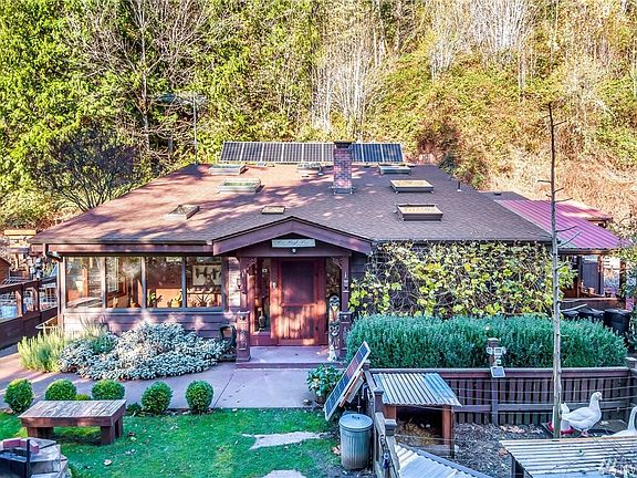 {ABUNDANT SUSTAINABILITY} Gated 40 acre hillside refuge for the self-sufficient buyer seeking OFF-GRID autonomous living! FOUR dwellings provide a multi-generational compound, long term or nightly rental possibilities. Completely Solar powered, 2 backup generators, park-like outdoor experience. Fishing pond, seasonal waterfall perfect for hydro power someday, garden, hiking trails, target practice and wood shed of your dreams. PRIMARY 1536 SQ FT home: 2 bedrooms + den, 3/4 bath, sauna and private deck off master. THREE additional studios complete with kitchen, bathroom, laundry, storage and rustic finishes. Sconce lighting throughout, skylights, hard wired sound system and just minutes from Lake McMurray. Remote yet only 5 miles from I-5.
