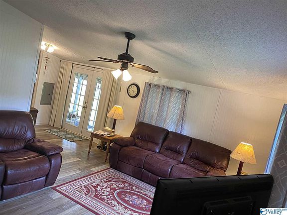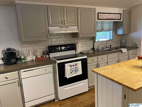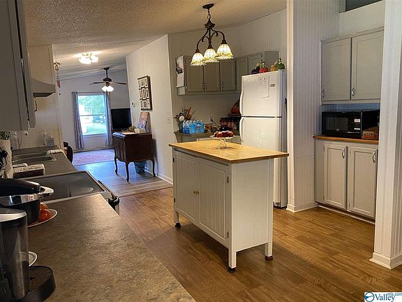 5 ACRES & very nice 3 bedroom mobile home! Kitchen offers all appliances and subway tile backsplash. Shiplap in Master bedroom; hardwood-like laminate vinyl flooring throughout. Den & Living room. Metal roof. Peach, apple, fig, muscadine.... lots of fruit trees. Creek on property. Two large detached workshops. Storm shelter. Sold as-is.