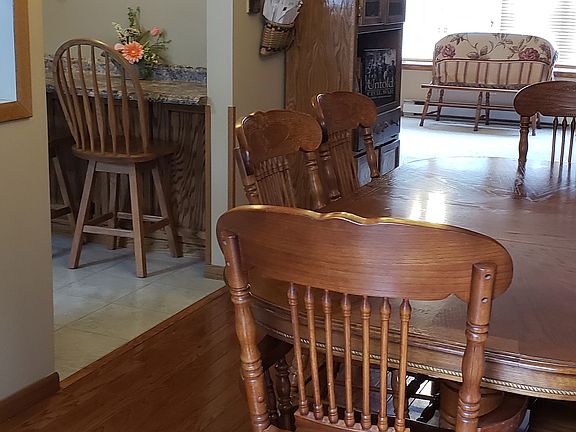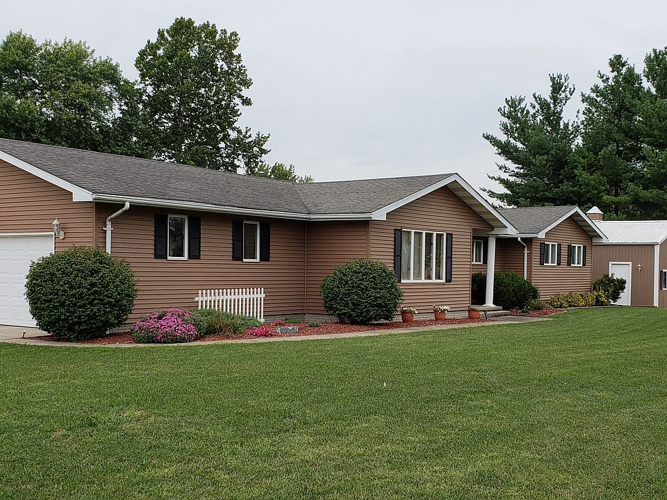 Wonderful 4 bedroom, 2 bath home with Living Room, Dining Room, Kitchen, Laundry and Office/Mud Room with attached 1-1/2 car garage. 24'x30' Detached garage heated by propane with a 14'x30' open front lean to, and a 12x16 garden shed. There is also a separate 8x18 Sun Room off of the deck. This home sits on a 4' crawl space. This house offers a master bedroom with 3 closets and a window seat with additional storage. and sits on a nice large corner lot.
