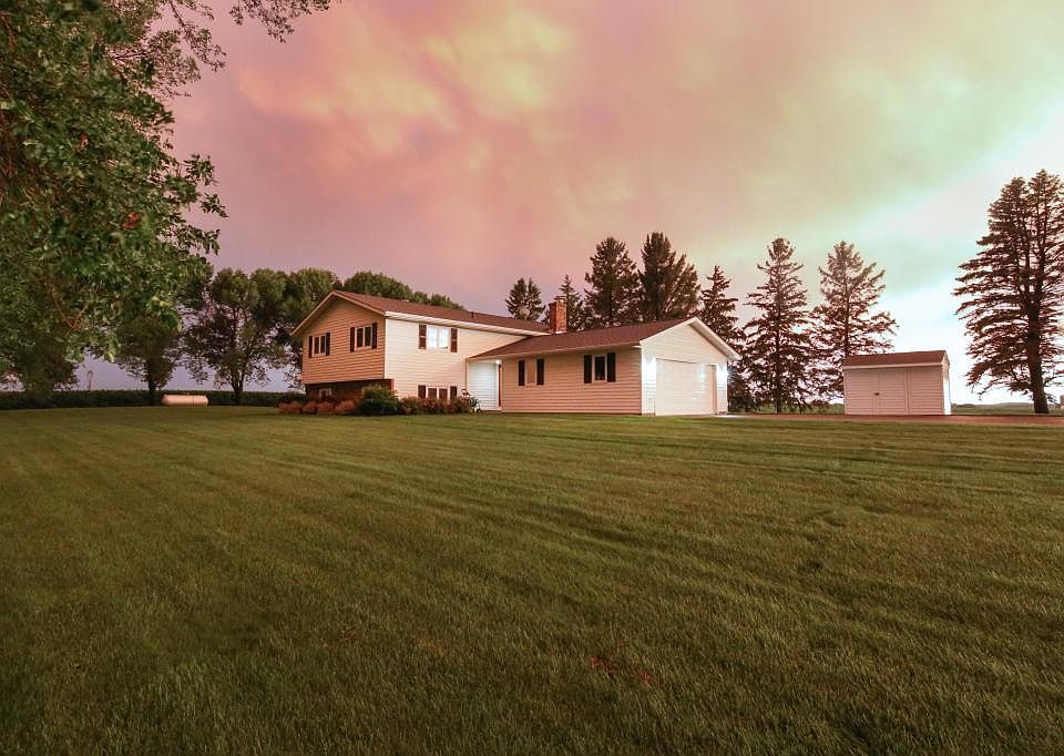 Stunning acreage property beautifully equipped for the country living lifestyle. Situated centrally between Hastings, Red Wing and Cannon Falls and just blocks off of main thoroughfare Highway 61. Pristine 2.25 acres of mowed grass surround the large, newer 60' by 48' outbuilding that is accessed via a separate turn around driveway. Mature trees shade the new, maintenance free deck and lower level patio. Superbly maintained with newer roof, windows, seamless steel siding, concrete garage and sidewalks and Lennox Elite HVAC system with WIFI digital thermostat. Storage Shed included. Beautifully remodeled kitchen with double wall ovens, granite and stainless steel appliances including a HUGE oversized fridge and freezer. Quality cherry cabinets and flooring. Spacious walkout lower level rec room with brick glad wood stove fireplace. Bring updating ideas to the rest of the inside. Hard to find property like this in such great shape and at this price so don't wait!