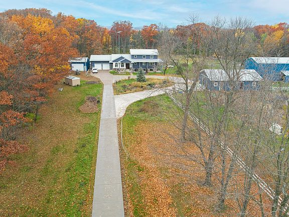 This renovated six-bedroom, three-bathroom country home is a sanctuary on 40 acres of picturesque land. Over the past 5 years, it's been meticulously upgraded, ensuring modern comfort and style. Situated on 30 acres of stunning mature woods with a serene pond, it's a nature lover's paradise. Additionally, there's 10 acres of lush pasture land, perfect for livestock or horses. The property features a newer livestock barn with a heated tack shop and water, alongside pole barns measuring 28x28 and 30x40, providing ample storage space. The long cement driveway offers easy maintenance and ample parking. Embrace country living at its finest in this exceptional property.