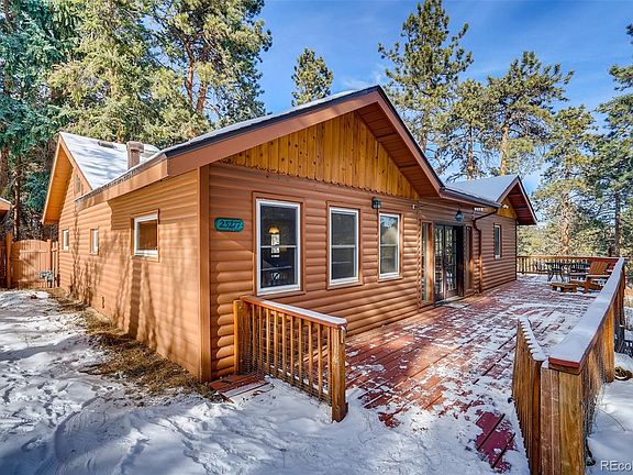 Own an acre and a half mountain property in a quiet corner of Indian Hills only 13 minutes from C470. Pence Park, Mt Falcon Park, and Evergreen are close by. Outside living at its foothills best with lots of space to entertain while viewing wildlife. Sit on the deck wrapping around the house or in a large screened in porch. Both upstairs and down have walk outs to red flagstone patios surrounded by mature rock gardens. A fenced in acre provides a safe space for pets and children. In the living room focused on a rustic fireplace enjoy family time under the vaulted ceiling with its four skylights. Improvements include updated counter tops, flooring throughout, new windows and paint, and a remodeled bathroom on the main level. French doors from the master bedroom open to the deck and the screened in porch. In addition to a detached garage with attic space and a garden shed, an abundance of closets and storage in the house complete this spacious home. Sump pump, new gutters and roof have been added within the last 5 years. Buyers are responsible for verifying the accuracy of all information and should investigate the data themselves or retain appropriate professionals.