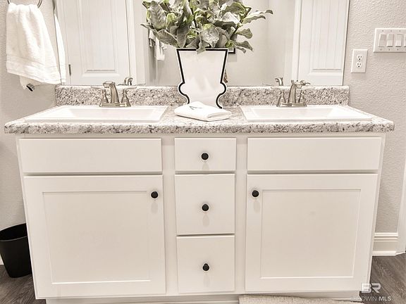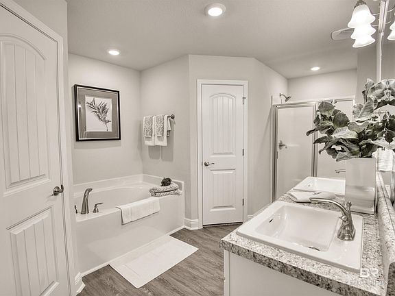 Move in Ready Model Home Large Homesite !!! Welcome to beautiful Ridgewood Park where you'll find a quite community with streetlamps and sidewalks perfect for walks. Centrally located for an easy commute to Mobile and Pensacola. Minutes from shopping, dining, entertainment and beautiful beaches. This 1930 Sq. Ft 4 bed 2 bath Brick Home has a Large Homesite . Covered front porch and covered rear Patio. The kitchen is very spacious with an island and a breakfast bar overlooking the living room. 36" Staggered Cabinets with knobs and beautiful crown molding . Stainless steel Appliances. Seven LED Low profile lights in the ceiling that really make the kitchen ideal for cooking. So if a large kitchen is important to you you will love this layout. This is a split plan has soaring ceilings in the main living area. Price Pfister Brushed nickel Faucets throughout, Luxury vinyl plank flooring everywhere but the bedrooms. Ceiling fans in the master trey and in the living room. The rest of the bedrooms are prewired for future fans if needed. 5-1/4" baseboard throughout even in the finished two car garage. The garage has a pull down stairs that lead to the well lit attic. The attic has 14 inches of insulation blown above the living areas. This home has a wind load rating up to 160 miles an hour. There are state of the art predesigned light weight storm shields for each window and door on the home. The owners suit has an en-suite bath attached complete with two walk in closets a garden tub, separate shower and double vanity. Relax on the 12'x14' covered back patio reading your favorite book or entertaining friends . You will love this community !! Don't miss your chance! Make an appointment to View today !! Seller will pay closing cost with approved lenders. Buyer to verify all information during due diligence.
