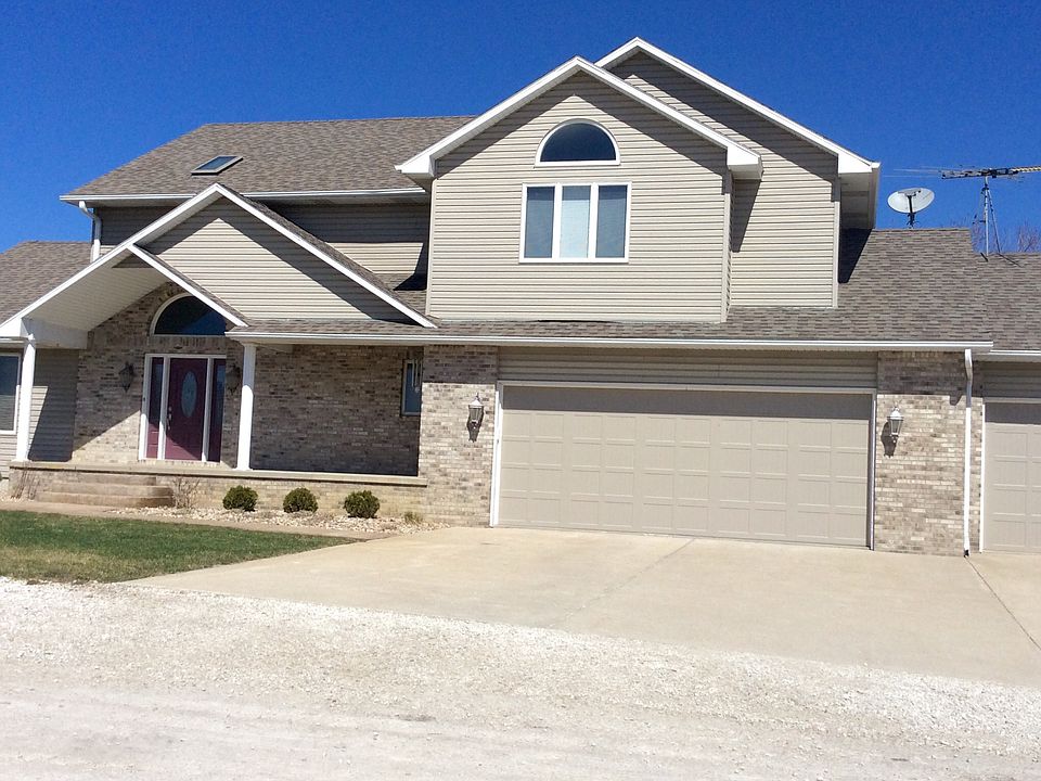 5 Acres. 3 large bedrooms, 2.5 baths, 2 stories with finished basement, pool table, hot tub on outside patio, 3 car garage, 3 machine sheds one of the sheds is heated. Near new appliances and Quartz counter top in the kitchen. 4 season room/office.