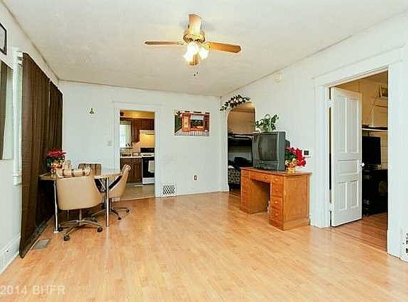 Stop Renting!-This ranch is ready to be your new HOME! Enclosed front entry porch is ideal for relaxing or gather with friends. The open family room is newly updated with laminate hardwood flooring that continues on into the home's 2 bedrooms. Adjacent kitchen with access to home's lower level and fully updated bath. Back mudroom is ideal when entering the home from the garage or yard. The home's oversized 2 car garage will easily hold your vehicles and lawn equipment and you will appreciate the home's low maintenance siding, newer seamless guttering, updated exterior a/c and newer driveway. Start your dream of homeownership today!