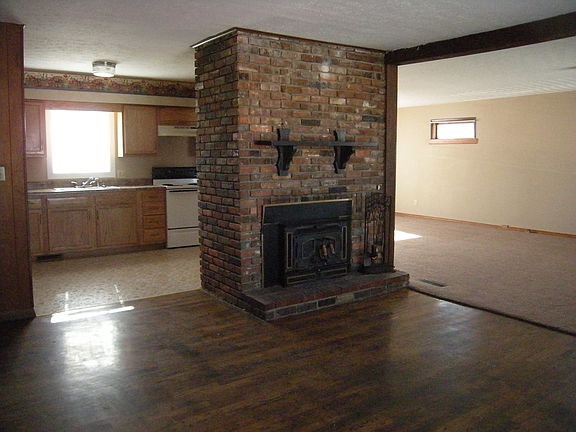 3 Bedroom 1 Bath. Large Living room/Dining area carpeted. Family room with wood Fireplace. Wood floors in Family room and Bedrooms. Kitchen has newer Cabinets, Counter, and Sink with new Linoleum flooring. Electric Stove. Bathroom has newer one piece Tub and new Linoleum flooring. Newly painted. Central Heat and Air. Furnace replaced 2 years ago.
