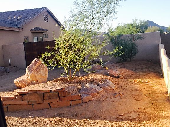 Updated landscaping with large trees, grass & boulders. Dry river with huge boulders crosses property. Separate grass areas. Separate sand agility field. Horse set up with covered shade.