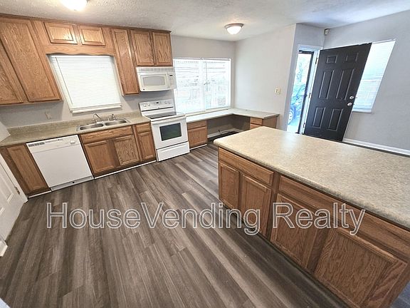 Open Concept Living, Dining, and Kitchen. Kitchen Island and built in desk for work from home, organizing bills, or kids homework. Large Back Deck. Carport and move covered parking in the back storage shed area. 2 bedrooms. 1 bathroom. New Windows. New LVP Flooring. Fresh Paint. **Advertised rent price assumes qualifying for the Rent Discount **Pets allowed with some breed restrictions, pet fee, and pet rent.