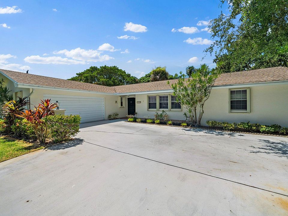 Located off desirable Prosperity Farms Rd, this 4 bedroom, 2 bathroom CBS corner lot home is ready to be yours. This 1971 home is the epitome of Old Florida charm, and has been lovingly maintained, ready for a new family to come in and modernize it. This is a split floor plan home, with a non-load bearing wall separating the kitchen from the massive living room that could completely transform the house into an open-concept layout. Located on a .345 acre corner-lot, there is plenty of room for a pool!2004: fiberglass shingle roof, 2014: Trane A/C, 2018 electric water heater, accordion shutters all openings.