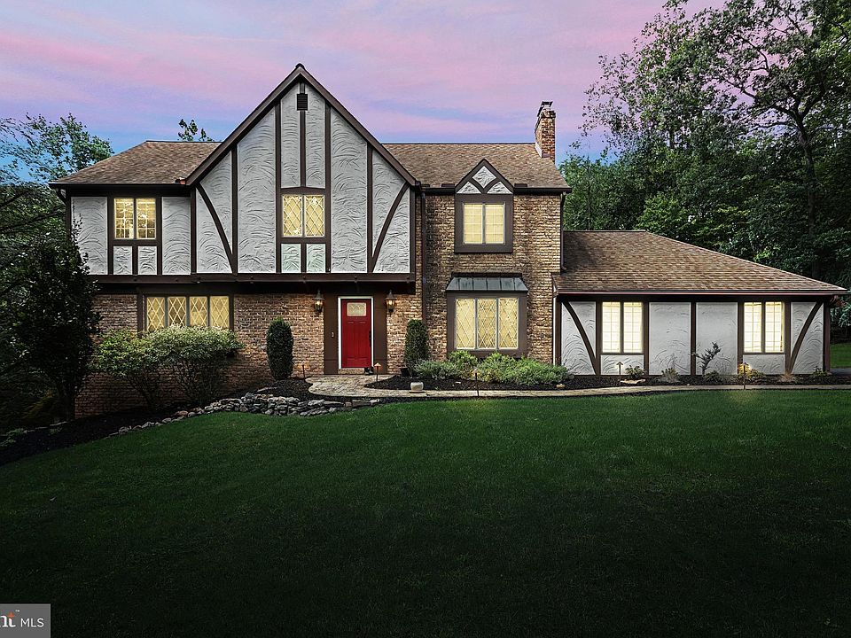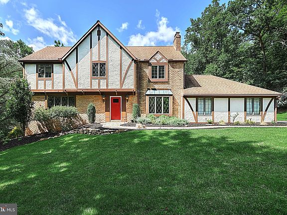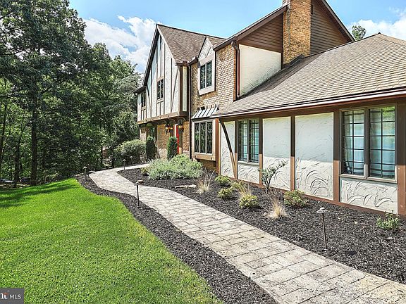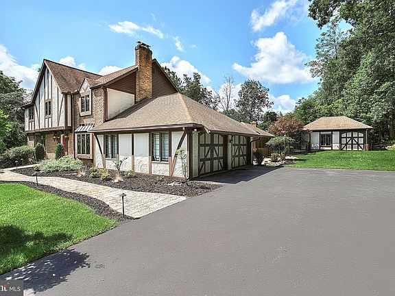 You do not want to miss this beautiful Tudor home. As you drive up you will be amazed by the ample parking that does not take away from the natural beauty of this property. Nestled in a quiet neighborhood this house has a lot to offer. Walking in the front door you have plenty of space to kick off your shoes and hang your coat in the foyer/hall closet. From here you can go left into a cozy but large living room that will lead into the formal dining room, or proceed right into a huge office that overlooks the front yard and has its own fireplace. Going directly down the hall from the foyer leads you into the enormous kitchen with an open floor plan including an informal dining area with kitchen bar top and fireplace to boot. The area is so big that you could fit another informal living room or any room you can imagine. Possibilities are endless here. Downstairs you will find a finished basement with a sound system built into the ceiling to allow for the most epic movie nights or game day parties. Included is a private server allowing high speed internet throughout. On the second floor you will find four bedrooms and two full bathrooms. The master bedroom has great views of the front yard and the ensuite bath includes a giant walk-in closet and overlooks the back deck with the pool. The pool not only has a spa with an overflow waterfall but a swim up covered bar. In the backyard you will also have access to an outdoor shower and a walkthrough bathroom that leads to a shed that houses all the pool equipment out of the elements. If that wasn't enough this house also includes a solar system with a backup battery system that means you won't have to worry about losing power during severe weather. Fresh paint throughout and staged by Penn Dutch Furniture (all staged furniture available for purchase as well) this house is ready for you to move in.