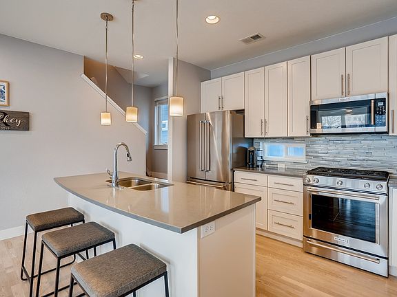 This enthralling end unit is here to impress from top to bottom. Starting from the top, soak in the unbelievable, unobstructed views of the Denver city skyline and the Rocky Mountains from the great size rooftop patio. One story below, the beautiful Master Bedroom retreat awaits with a private master bathroom with a gorgeous shower and great size walk-in closet. On the other end of the hall, you'll find a great size additional bedroom and the stackable washer and dryer unit (included with the sale). The living room level will surely wow guests with the effortless flow from the bright, open concept between the living room, dining, and kitchen. The kitchen is equipped with high end KitchenAid stainless steel appliances, including a gas-range stove. The great size living room also has a nook, which can make a great office/work space. The first floor grants access to the private home entryway, powder bathroom, and access to the huge 2-car attached garage. SPECIFICALLY unique to this home is an incredible storage space in the garage that is extraordinarily difficult to come by Downtown. Just a few steps outside your door is Jefferson Park, a B-Cycle station, Briar Commons, a clear shot of the football stadium, and so much more! Incredible views on a private rooftop deck, bright open concept with high end finishes, move-in ready end unit, prime location, great parking and storage, and so much more.. you don't want to miss seeing this one!