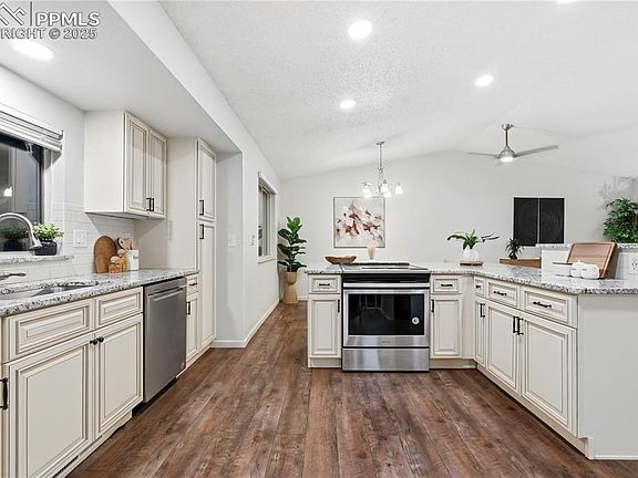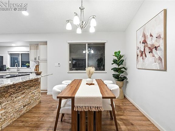 Nestled in a peaceful neighborhood, this five-bedroom, four-bathroom residence offers the perfect blend of comfort and convenience. From the moment you step inside, you'll be greeted by an abundance of natural light cascading across beautiful hard floors that flow throughout the home. Cozy up on chilly evenings beside the inviting fireplace, the perfect centerpiece for relaxing with family and friends. The heart of the home, a beautifully updated kitchen, is a chef’s dream, equipped for both everyday meals and entertaining. This home is designed for seamless living, featuring a convenient main-floor laundry with a newer washer and dryer. Escape to your private sanctuary in the spacious primary bedroom, complete with an elegant ensuite bathroom. With five bedrooms and four bathrooms, this home provides ample space for a growing family or accommodating guests. The finished basement adds a flexible living space, featuring a versatile bonus room that can be customized as home office, entertainment hub, or play area. Step outside to discover a generously sized backyard, a blank canvas awaiting your landscaping creativity. For those with recreational vehicles or extra vehicles, the additional concrete parking space is a practical and valuable asset. The benefits of this home extend far beyond its walls. Located in a sought-after, quiet neighborhood, you can enjoy tranquility while remaining close to everything CO Springs has to offer. Just a short walk away is the scenic Rampart Dog Park, perfect for pet owners and outdoor enthusiasts. This prime location offers close proximity to major highways, providing easy access for commutes. Daily errands and leisure activities are a breeze, with nearby schools, hospitals, shopping centers, restaurants, and entertainment options all just minutes away. This is more than a house; it’s a gateway to a vibrant and convenient lifestyle. Buyer's agent to verify all information. Information provided are deemed reliable but not guaranteed.