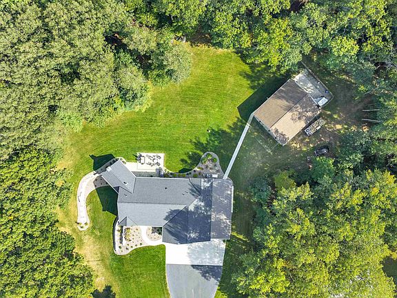 Stunning Remodeled Ranch by C & C Builders! This gorgeous home sits on 2.16 wooded acres at the end of a cul-de-sac w/ unmatched privacy & wildlife views. Car lovers will love the 6-stall attached + 4-stall detached garage. Inside, enjoy a designer kitchen w/ white cabinets, stained island, high-end appliances, quartz, backsplash & amazing walk-in pantry. Living rm w/ stone FP, family rm w/ cathedral wood ceiling & wood stove, patio doors to paver patio w/ built-in gas grill, bev fridge spot & firepit. Primary suite is a spa retreat w/ custom closet, heated floors, dbl vanity, jetted tub & steam shower. Another ensuite on main. Walkout LL adds family rm, BR w/ WIC & large office/4th BR. Luxury, comfort & style await! 48 hrs for binding acceptance. Showings begin 9/23.