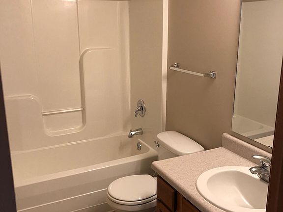 Split level duplex. Upstairs has kitchen, living room, 2 bedrooms, and bathroom. Lower level has living room, 2 bedrooms, bathroom, and laundry room (which currently has a washer and dryer). Large rooms, big closets. 2 stall garage with opener and keypad Central heat and air. All electric NO PETS ALLOWED. No housing or Sec 8 Landlord pays trash and water