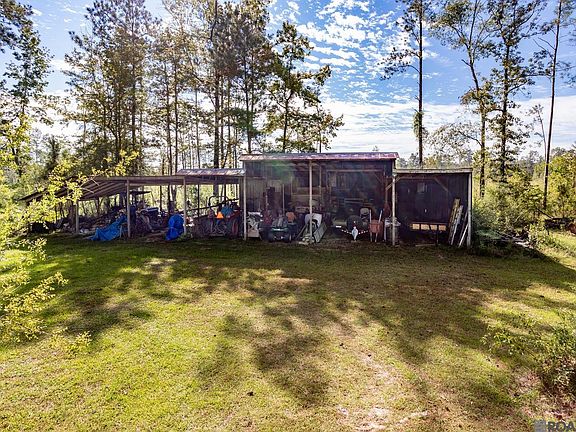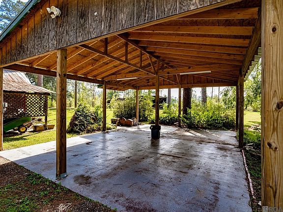 Looking for a beautiful log home on a breathtaking huge yard (acreage) that resembles a gorgeous park? You will want to bring your fishing pole and see what it is in the pond on the property. Large two-story barn with upstairs having a studio apartment. Spacious equipment shed behind the barn. Also, there is a two-car covered parking area. Lush trees throughout the property. Covered porches on the front and back of the home. Large cathedral ceiling living room open to the kitchen and breakfast area. Build-in bookcases and gun safe in the living room with maintained wooden flooring. Two spacious bedrooms along with one bath that has a large walk-in shower. This home did not get water inside the home in 2016, and the barn only got about 5 inches. This unique property and home are quiet and ready for you to enjoy country life.