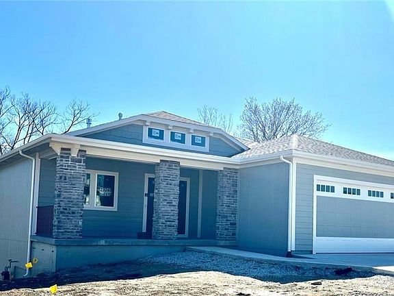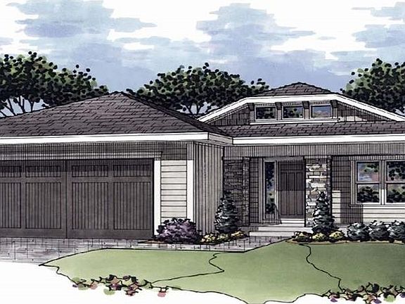 "The Camas" by Rodrock Homes. The covered porch and stone pillars create a welcoming entrance on this stunning home. Enter through a beautiful entry into the large great room with view out to the covered deck and treed lot. The kitchen island provides a functional space for casual meals and entertaining. Hardwood floors included on entry, great room, kitchen, dining room, as well as the pantry and half bath on the main level. Master suite on main level includes dual vanities and a separate shower and free standing soaker tub. Main level also includes a mud room dry bar in the great room. Walkout lower level includes 2 more bedrooms that share a bath with double vanities, and a recreation room with a bar. Maintenance Free Evergrain composite deck included.