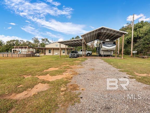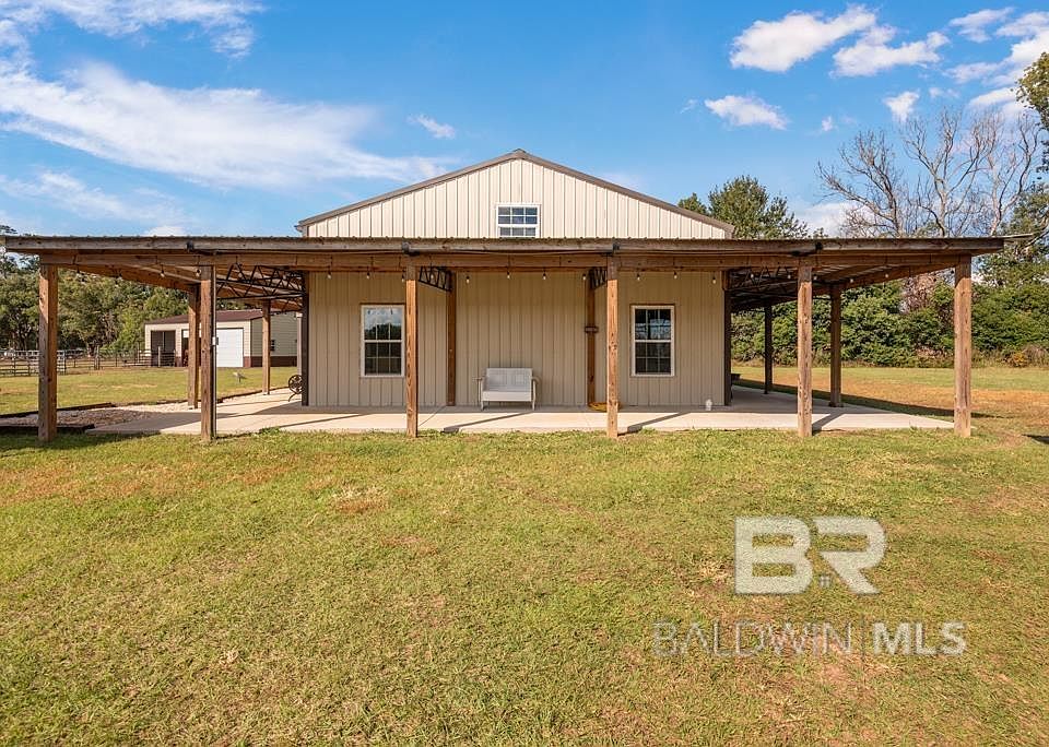 Beautiful 2,279 sq ft barndominium built in 2022, located on 5.7 acres in the heart of Robertsdale. This modern property features an open floor plan with 3 bedrooms, 2 bathrooms, and a loft suitable for an office or game room. The kitchen includes tall white cabinets, butcher-block countertops, tile backsplash, and stainless steel appliances. Additional improvements include an above ground pool, covered patio, 4 pasture corrals, covered RV parking with a 50-amp breaker, and a 1,200 sq ft shop with 3 bays, power, and water. Ideal setup for live stock, equipment, or hobby use. Private, no HOA, usable acreage in a prime location with quick access to schools, shopping, and Highway 59. Move-in ready with modern finishes and excellent outdoor amenities. Buyer to verify all information during due diligence.