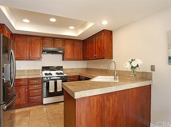 Nestled in the gated community of Finisterra on the Green is this lovely 2 bedroom/2 bath home which is adjacent to Casta Del Sol Golf Course. In addition to the 2 bedrooms, this home has a den with a closet on the first level. Once you walk up the stairs, this home lives as a single level. There is an office just off the living room for your convenience when working from home. Entertain guests in your dining room or on the patio just off the kitchen and enjoy al fresco dining. Boasting a dramatic open floorplan with bright and sunny orientation, this home possesses pride of ownership that surpasses every home in this price range. Relax and recharge in the master suite with access to a private balcony. The master shower was recently remodeled and recessed lighting added. Generous sized secondary bedroom also has access to a different patio with the second bath conveniently located just across the hallway. Travertine and laminate flooring flow throughout the home. Resort style amenities include a pool and spa and separate putting green. As a resident you will enjoy the amenities that Lake Mission Viejo provides such as duffy boat rides, paddleboarding, summer concerts or an awesome 4th of July firework display. This home is a rare opportunity at this price.