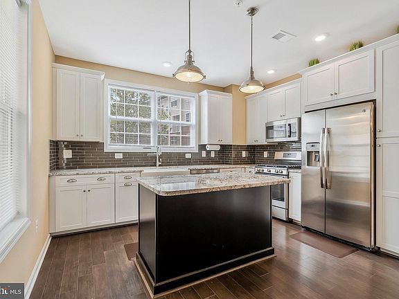 One levelGranite counterWhite kitchen cabinetsEngineered hardwood floorsFirst floorCeramic tile in bathsStainless steel appliances