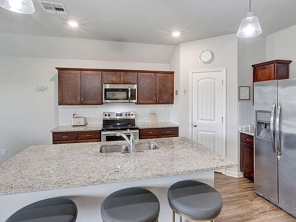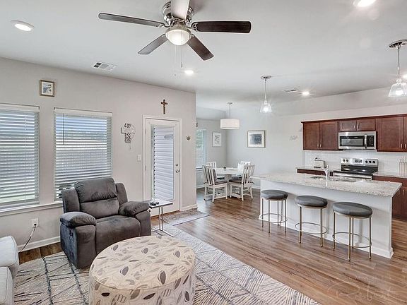 Beautiful 3 bed 2 bathroom home in the Coves of the Highland Subdivision with an open floor plan which includes kitchen, living rm and dining room, great for entertaining! The kitchen features granite countertops, beautiful cabinetry, stainless steel appliances, attractive lighting and a large pantry. Laminate floors in living room and kitchen make living easy. The large primary suite is a relaxing getaway leading to the master bath that has dual vanities, a garden soaking tub/oversized shower including a large master closet! Separate laundry room and newly built shed for storage. Large covered rear patio with fenced in rear yard.