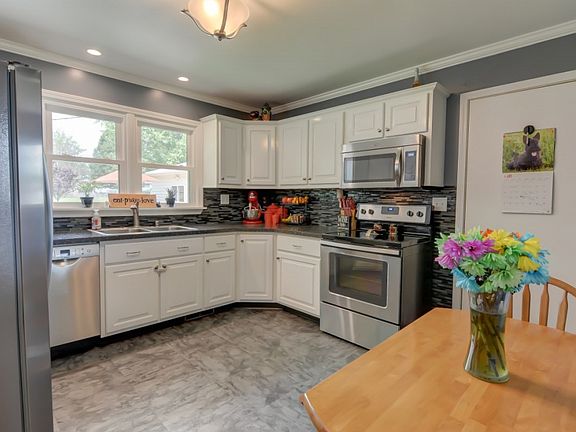 Honey, pack your bags ! WOW kitchen remodel 2016 all stainless kitchen appliances stay ! ! New siding, soffit, shutters, guttering 2017. Most interior trim, doors, windows, exterior doors and storms, roof on both house and garage 3 yrs ( tear off), HIGH Efficiency furnace & CA 2017, along with added insulation. Newer patio, fencing, new landscaping front, back and perennial borders added, plus ornamental trees. Fire pit for cool evenings ! New garage door and opener on 2nd garage, large builtin work bench. TONS of yard space for gatherings !! 2nd garage also has back overhead door for pulling large mower or boat, etc, through to back yard. Plenty of parking in asphalt driveway !! Was 3 bedroom, could convert back. Hardwood floors !