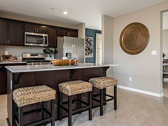 Price currently includes solar!!! This spacious two-story, five bedroom, three bathroom home offers approximately 2,814 square feet of living space. A bedroom and a full bathroom are located on the first floor just off the entry. The open-concept living area opens to a large kitchen featuring quartz countertops, a walk-in pantry, a center island with snack bar, and Whirlpool® stainless-steel appliances including a gas range, microwave and dishwasher. The formal dining area is located adjacent to the kitchen. Upstairs is an open loft, the main suite and three additional bedrooms, as well as the indoor laundry room. The main suite has an adjoining bathroom with dual vanity sinks and a large walk-in closet.