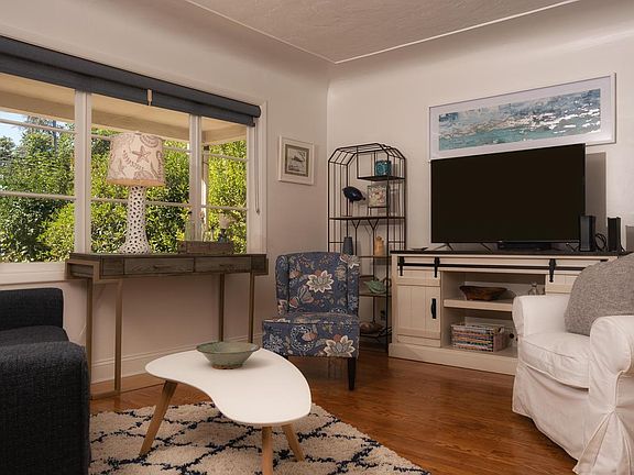 Enchanting East Medford Bungalow with Pool and RV parking. This 3 bedroom 2 bathroom home is 1432 square foot on a .20 acre lot. The living room has lots of light with its southern facing windows and has an elegant corner gas fireplace with marble tile. The home has custom hard wood floors throughout. In the kitchen you will find updated cabinets with pull out pantry drawers, under cabinet lighting, wood counter tops and an eating bar. This home has on-demand gas water heater and new paint inside. The back yard is great for entertaining with a pool, a large covered back patio and a deck with a gazebo. There is a water feature, mature landscaping, gorgeous flower gardens and a rustic storage shed. This home has a newly built 2 car finished garage and RV parking.