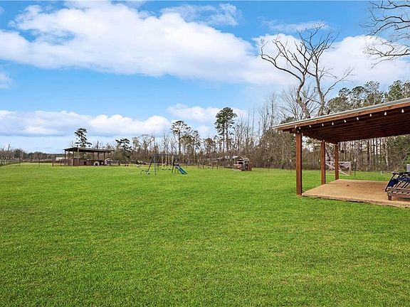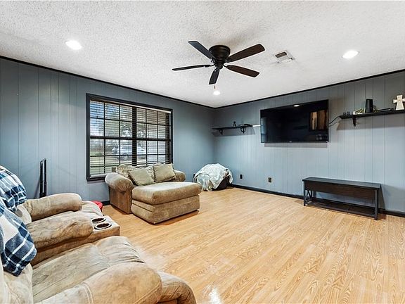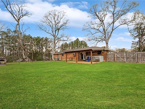 Large oak trees provide plenty of shade in the front yard of this 3 bedroom 2 bath brick home situated on 2 acres.